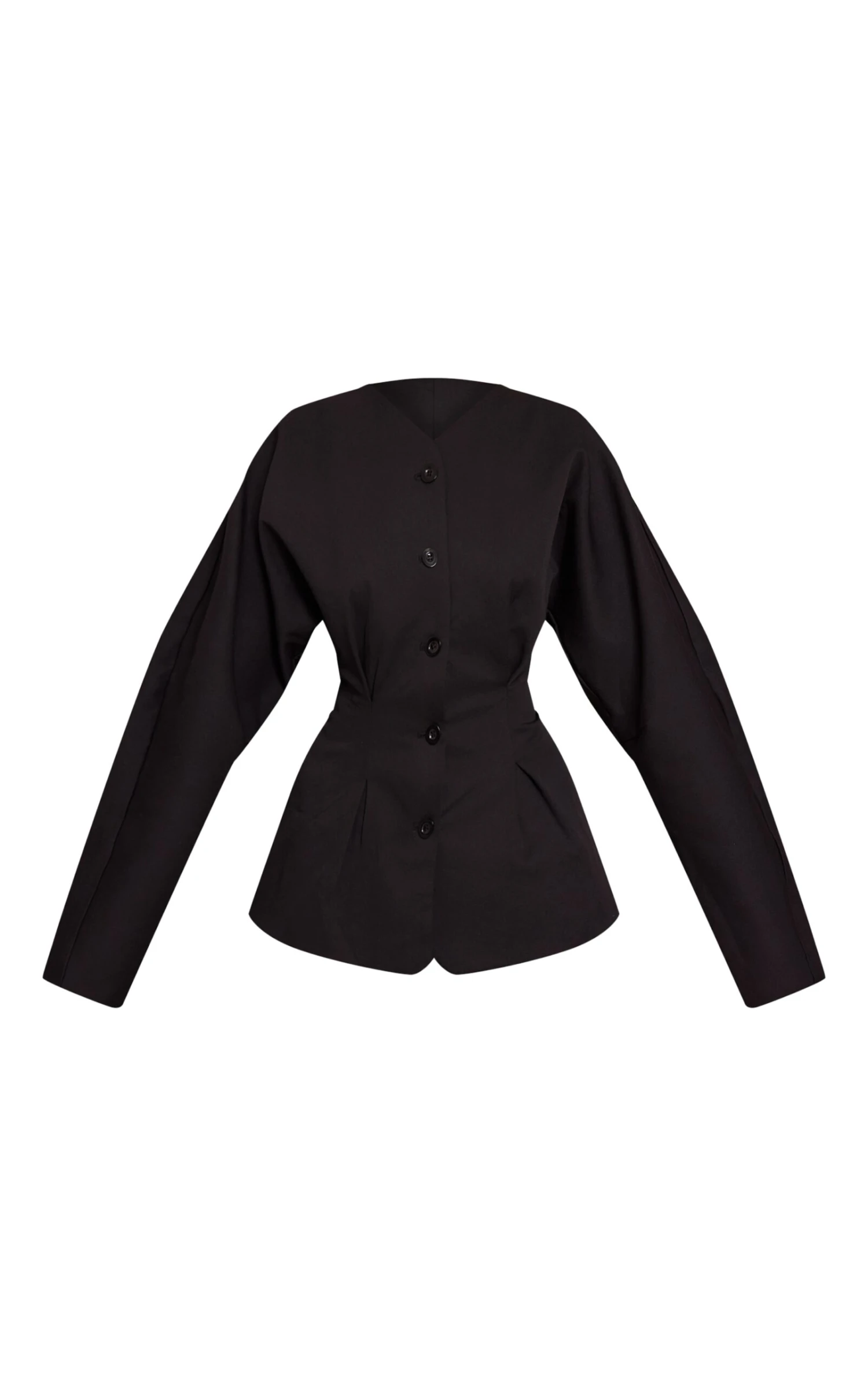 Unveil an assured statement with tailored precision and contemporary form. The black cinched waist value up blazer reimagines classic tailoring with its artful V-neckline and full value-up front. This design flawlessly sculpts the figure with a dramatically cinched waist, featuring elegant pleats that create a confident, peplum-like silhouette, while voluminous long sleeves and structured shoulders add a modern, assertive edge. Perfect for an elevated occasion, pair this striking blazer with its matching mini skirt for a cohesive two piece set, or style with sleek tailored pants. Complete your look with sophisticated gold heels and a pair of discerning drop earrings, ensuring an effortlessly polished finish that truly captivates.