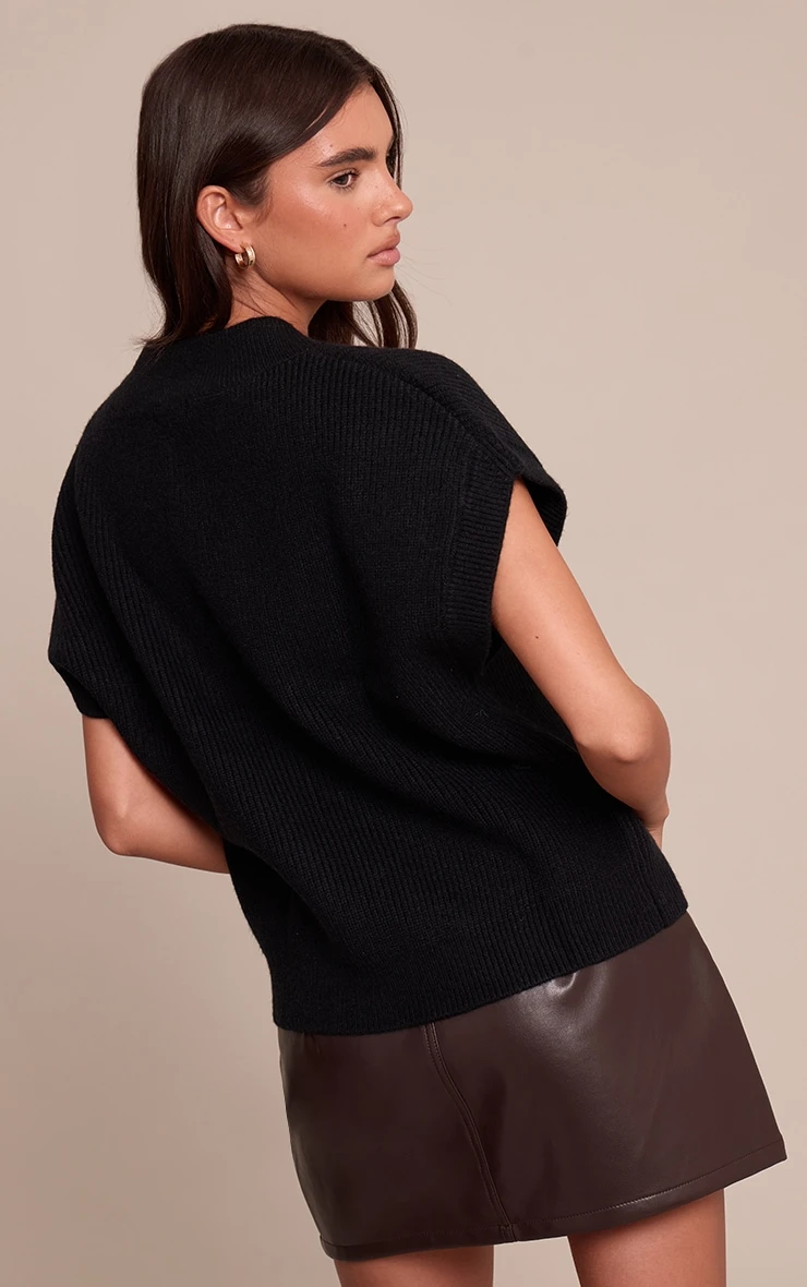 Stay effortless and versatile in the black sleeveless knit sweater. Designed with a soft knit texture and a clean sleeveless cut, this top is perfect for layering or wearing solo. Pair it with tailored pants for a polished look, or style with denim and chunky sneakers for a relaxed fit.