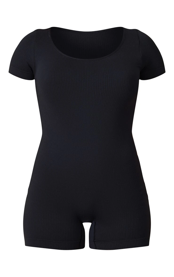 We’re obsessed with this black structured snatched rib scoop neck short sleeve unitard for your new season off-duty wardrobe. Its black structured snatched rib material is super comfy and easy to style whilst its scoop neck adds a luxe touch. This unitard is seriously flattering on your figure and is sure to impress no what your plans are. Style effortlessly with box-fresh sneakers or keep it chic and add an oversized shirt.