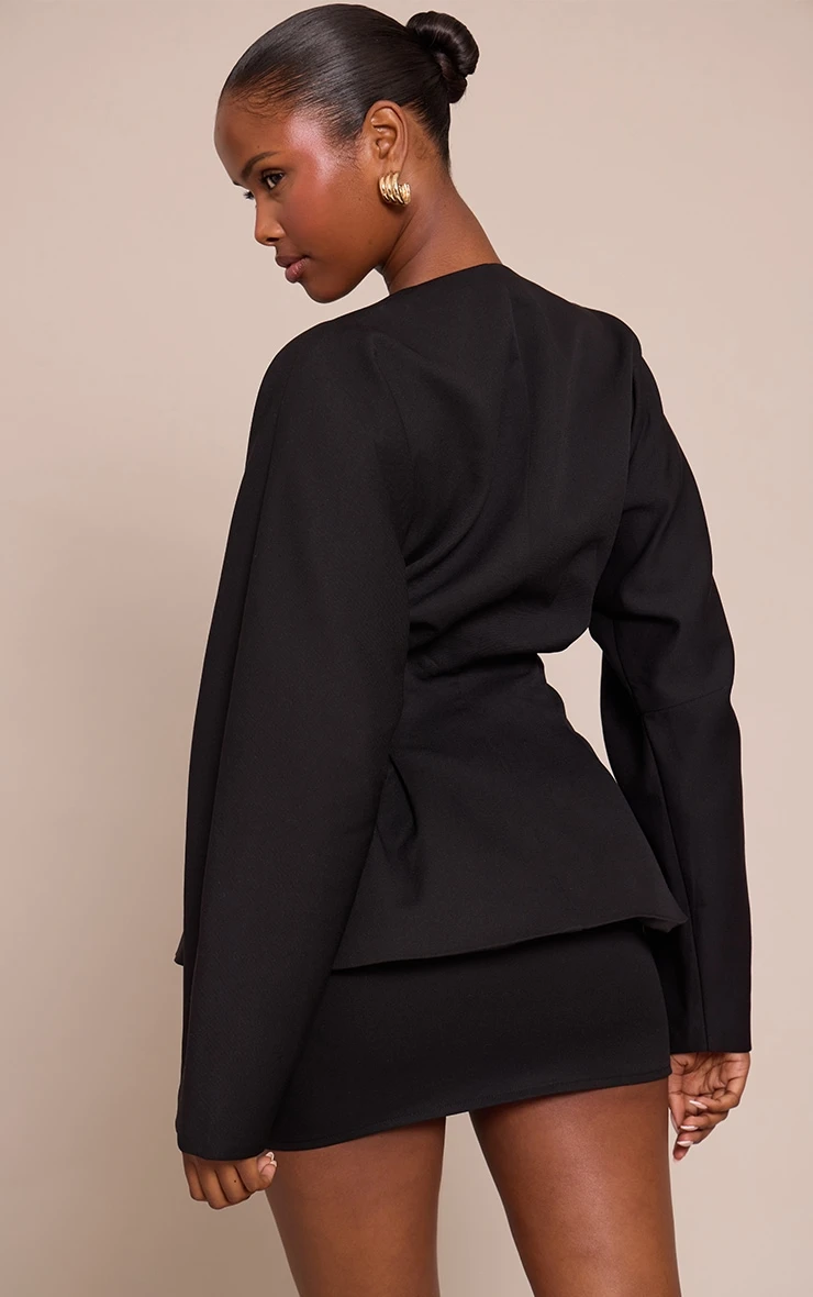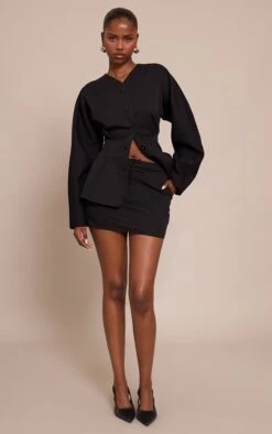 Define your next after-dark look with an undeniable edge. The black woven tailored micro mini skirt confidently anchors any ensemble, its streamlined cut and precise tailoring creating a commanding, shorter-than-short silhouette. Pair this essential bottom with its coordinating cinched blouse for a high-impact monochrome two piece set, or introduce a crisp white shirt for an unexpected contrast. Ground your presence with striking black high heels, then complete the polished aesthetic with subtle gold stud earrings, proving that true style lies in knowing your power.