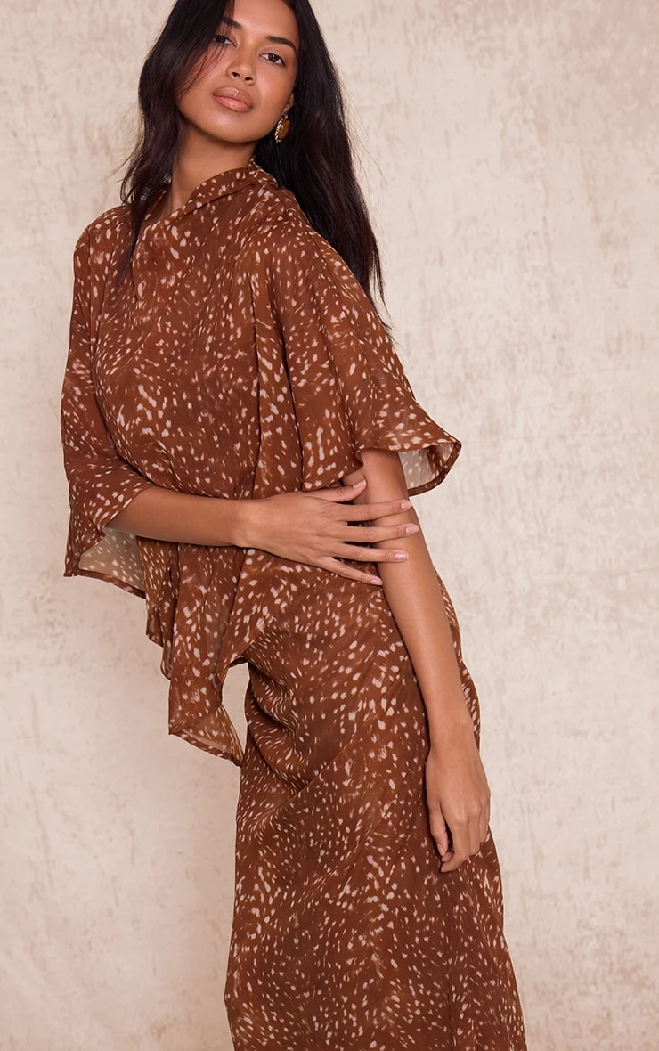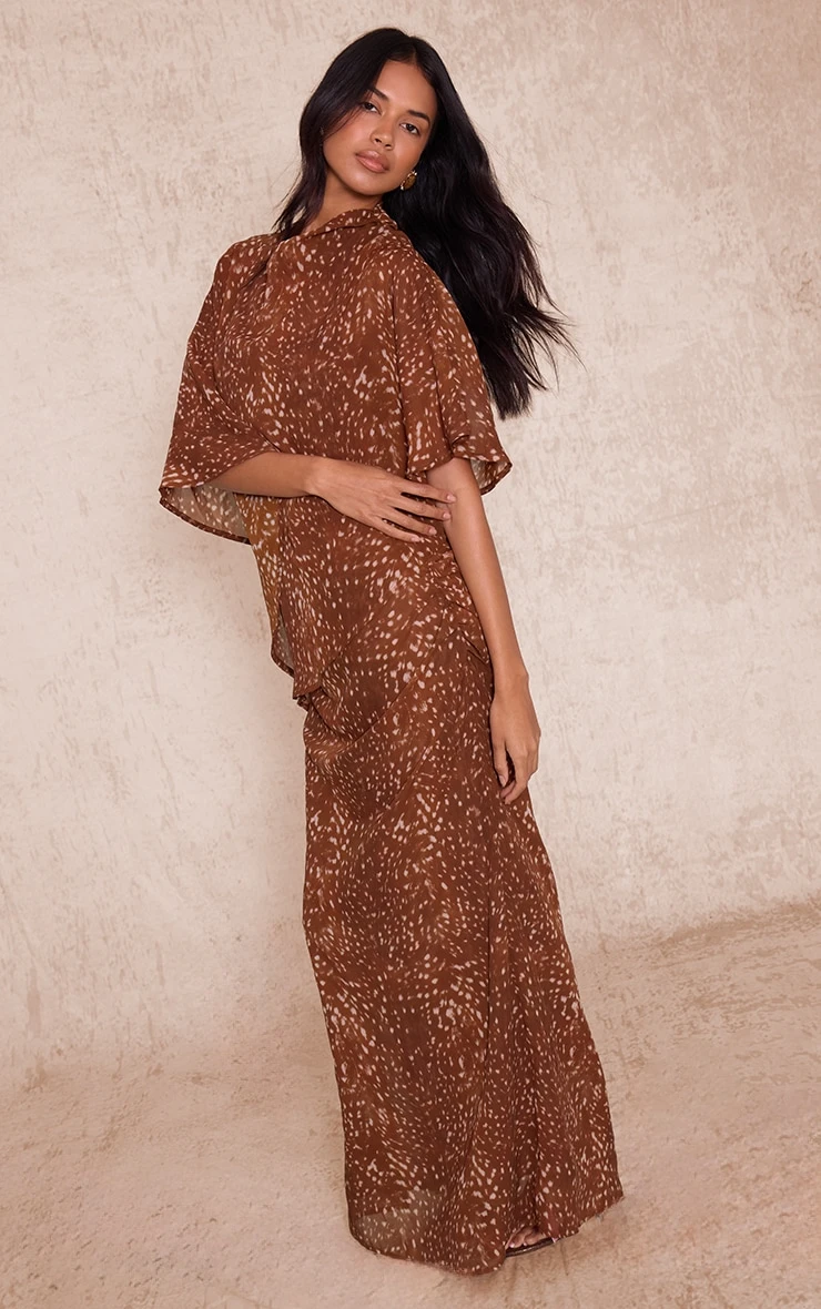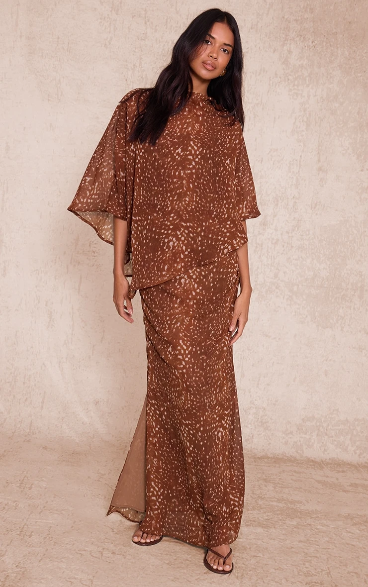 Bring drama to your wardrobe with the brown abstract printed chiffon maxi dress. Featuring a flowing chiffon fabric, abstract print, and floaty maxi length, it’s perfect for events styled with strappy heels and minimal jewelry.