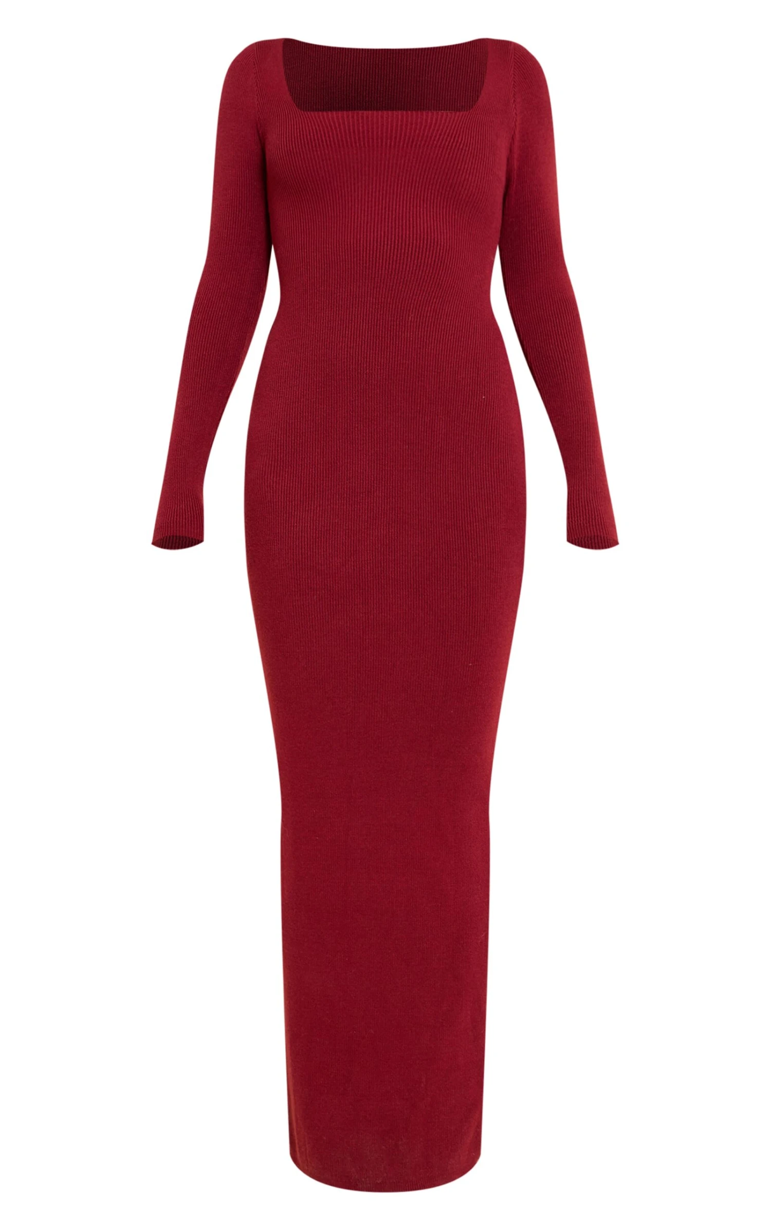 The burgundy square neck knitted maxi dress balances simplicity and allure. Featuring a structured square neckline and a fitted silhouette, the stretch knit fabric sculpts the body while maintaining comfort. The maxi length makes it versatile for both day and evening wear. Pair with heeled boots and a leather jacket for modern polish, or style with strappy heels and statement earrings for evening refinement.