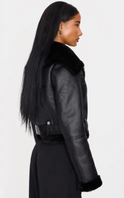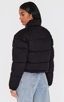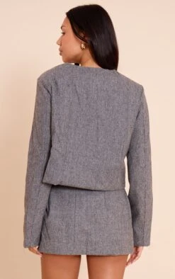 Prettylittlething Black Woven Cropped Shoulder Padded Blazer