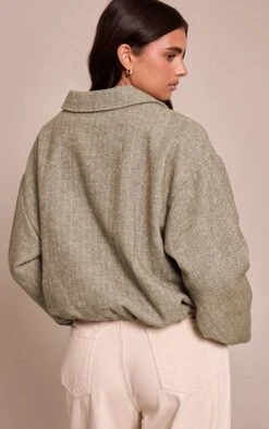 Prettylittlething Chocolate Trench Detail Cropped Zip Up Jacket