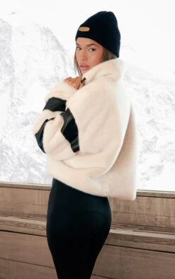 Prettylittlething Cream Faux Fur Contrast Sleeve Zip Up Coat