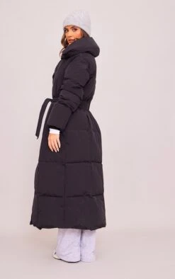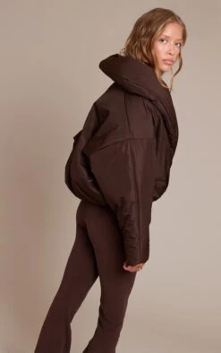 Prettylittlething Black Cropped Peach Skin Bubble Puffer Jacket