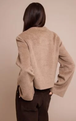 Prettylittlething Taupe Linen Look Tailored Cinched Waist Blazer
