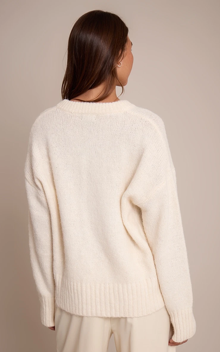 The cream v neck rib detail sweater combines minimalism with classic charm. Featuring ribbed detailing and a flattering V-neckline, its versatile design transitions seamlessly between everyday and elevated settings. Pair with jeans and loafers for daytime chic, or layer over a slip skirt with heels for effortless evening polish.