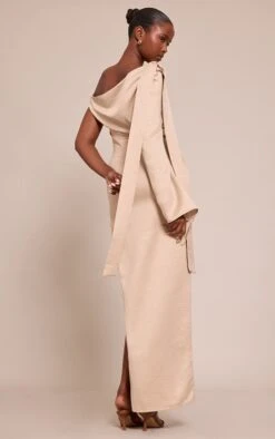 Prettylittlething Natural Shoulder Pad Boat Neck Bodycon Dress
