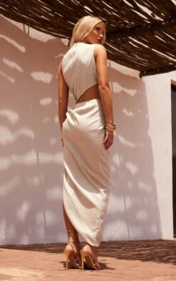 Prettylittlething PLT Label Dark Brown Double Layer Slinky Asymmetrical Panel Midaxi Dress