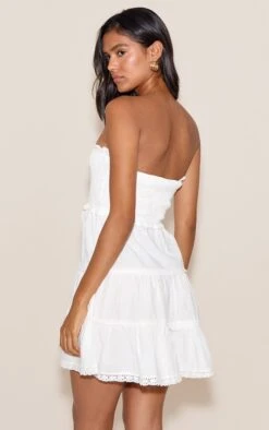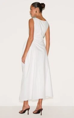 Prettylittlething White Boucle Oversized Low Belt Shift Dress