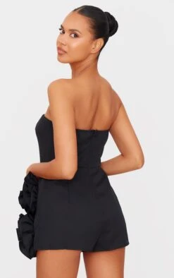 Prettylittlething Black Oversized Rose Detail Bandeau Skort Romper