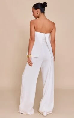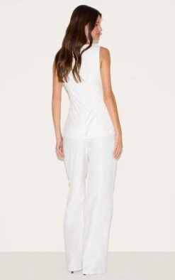 Prettylittlething White Tailored Boat Neck Longline Jumpsuit