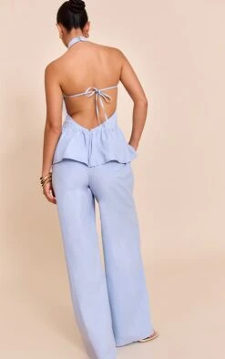 Prettylittlething Butter Yellow Structured Woven Peplum Straight Leg Jumpsuit