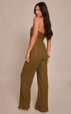 Prettylittlething Khaki Lace Fold Over Straight Leg Jumpsuit