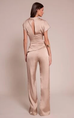 Prettylittlething Champagne Satin Cap Sleeve Straight Leg Jumpsuit