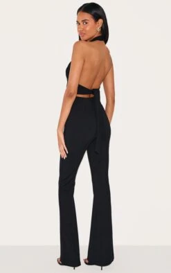 Prettylittlething Black Sequin Velvet Waistband Strappy Jumpsuit