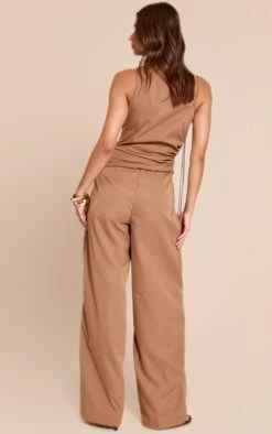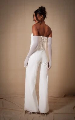 Prettylittlething White Linen Blend Tailored Bandeau Wide Leg Jumpsuit