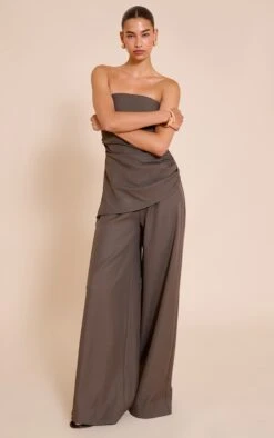 Prettylittlething Mushroom Double Layer Contour Jersey Bandeau Wide Leg Jumpsuit