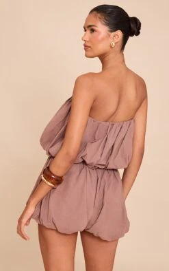 Prettylittlething Mushroom Cross Front Cocoon Sleeve Tailored Romper