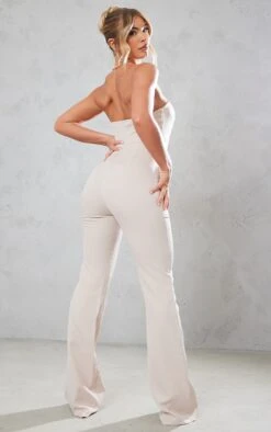Prettylittlething Stone Pinstripe Halter Vest Tailored Romper