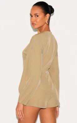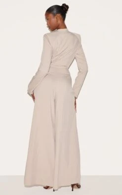 Prettylittlething Stone Tailored Woven High Neck Cocoon Sleeve Romper