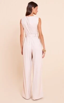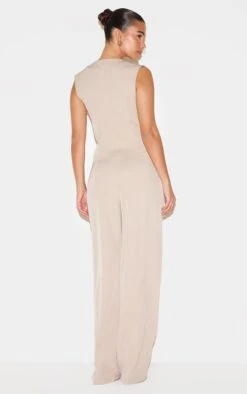Prettylittlething Stone Woven Boat Neck Straight Leg Jumpsuit