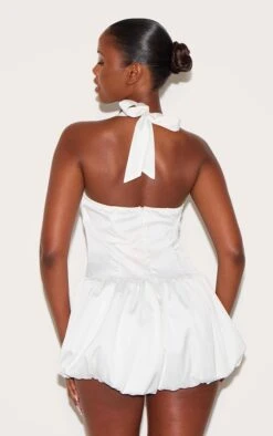 Prettylittlething White Halter Neck Drop Waist Floaty Romper