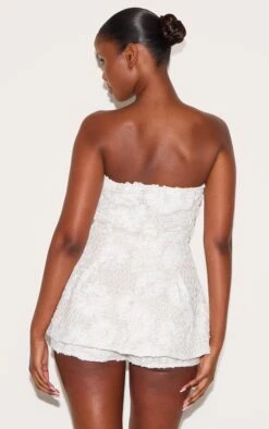 Prettylittlething White Embellished Tweed Bandeau Skort Romper