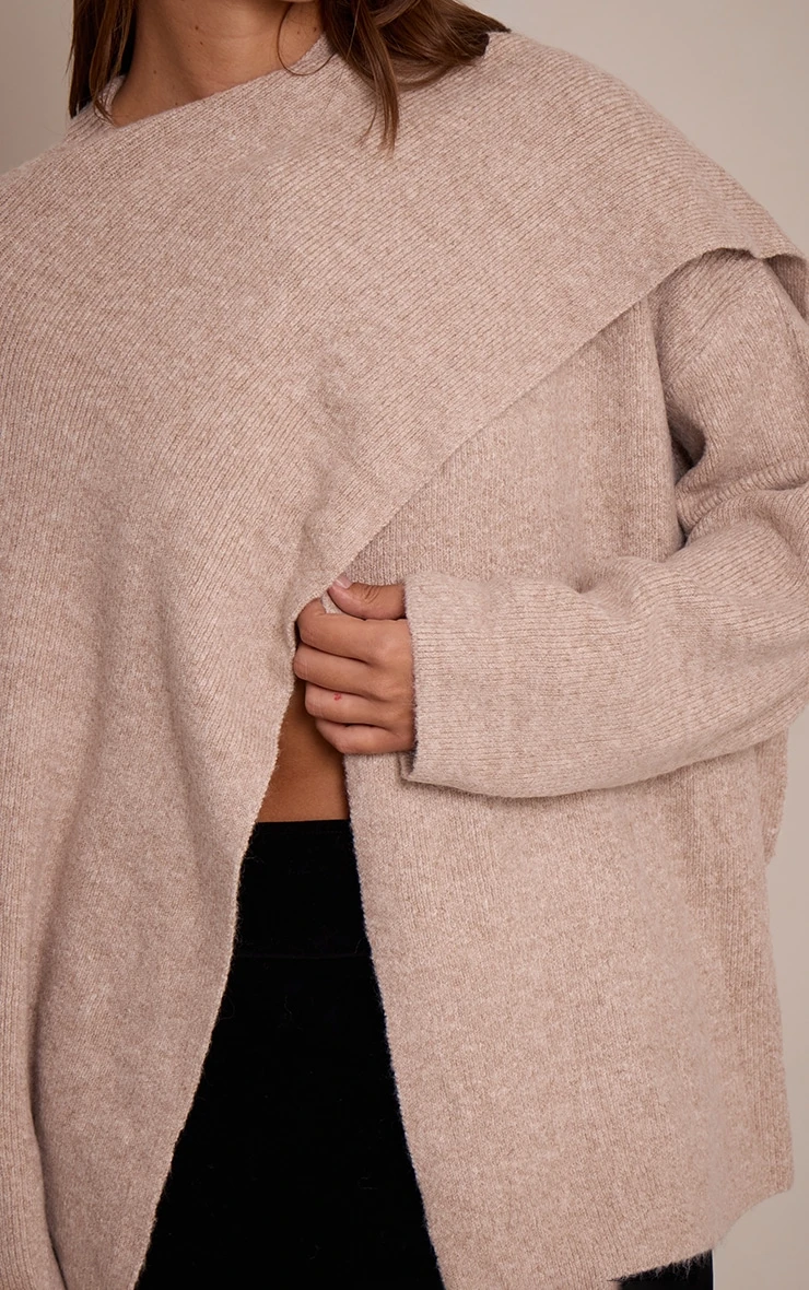 Stay cosy in the oatmeal scarf detail soft knit sweater. Made from an oatmeal soft knit material, it features scarf detailing, long sleeves, and a relaxed fit. Pair with tailored pants, kitten heels and gold earrings for an effortlessly chic finish.