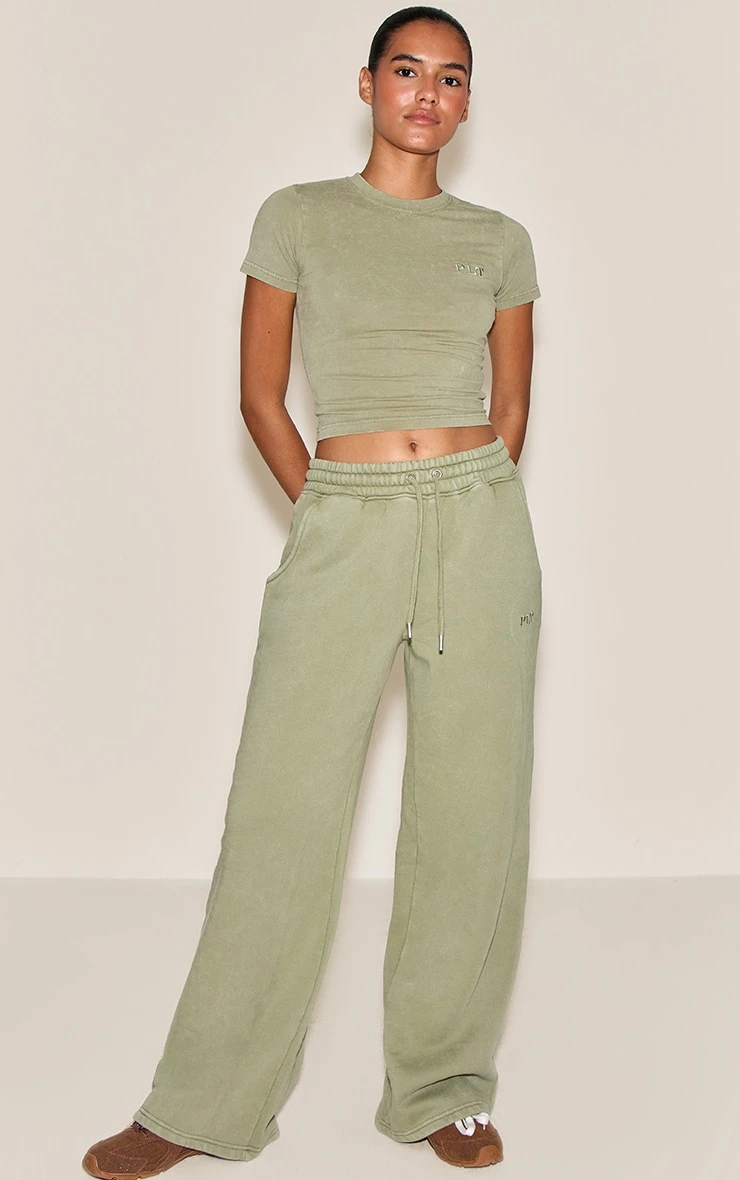 Keep it casual with the olive washed wide leg sweatpants. Made from an olive washed material, they feature a wide leg silhouette, elasticated waist, and relaxed fit. Pair with slip on mule heels and gold earrings for an effortlessly chic off-duty vibe.