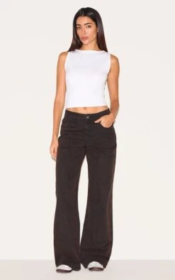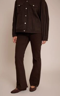 Prettylittlething Dark Chocolate High Waisted Denim Bootcut Jeans