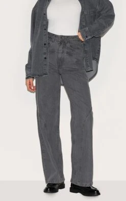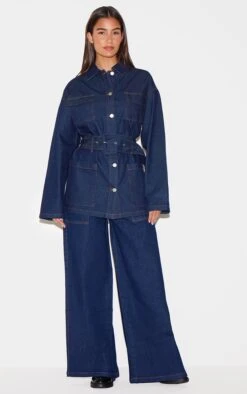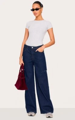 Prettylittlething Indigo High Rise Split Hem Boyfriend Jeans