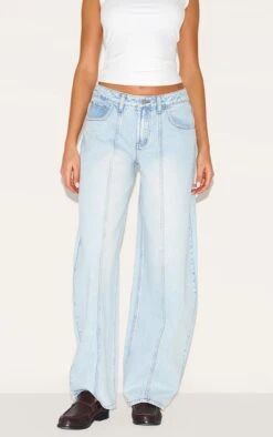 PRETTYLITTLETHING Light Blue Wash Thigh Split Boyfriend Jeans
