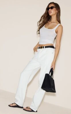Prettylittlething White High Waist Split Hem Boyfriend Jeans