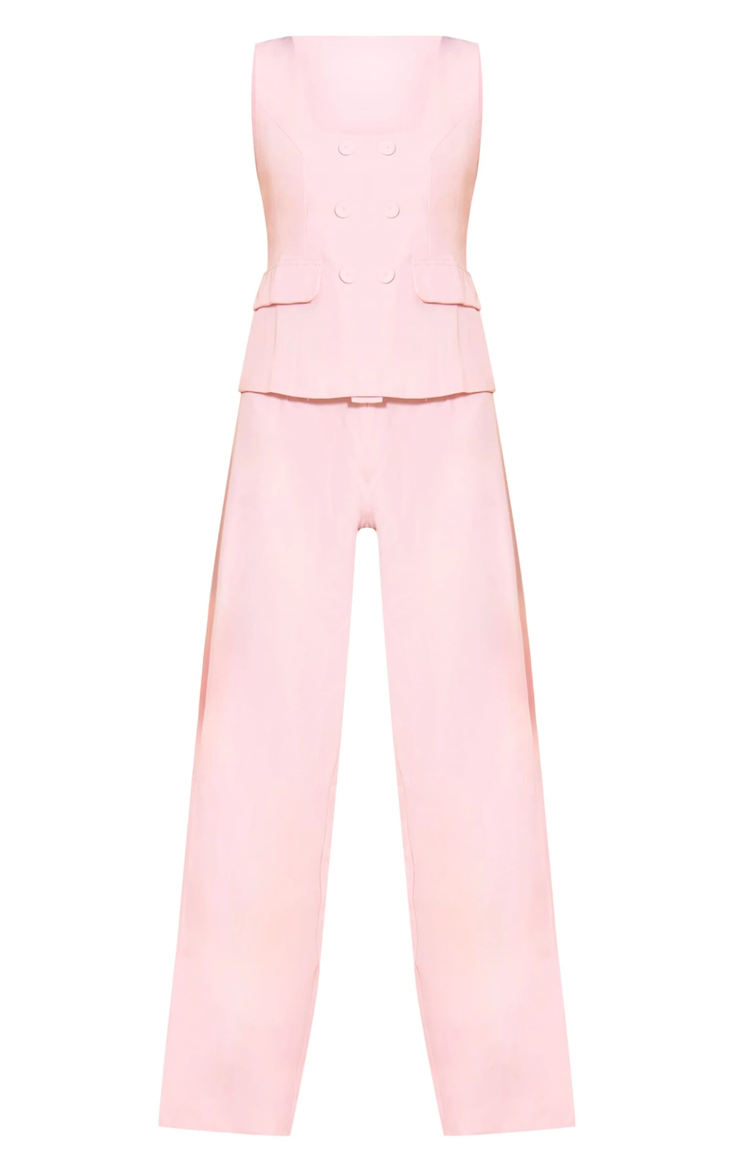 Keep it chic in this pink woven value detail wide leg jumpsuit. Made from pink material, this jumpsuit has value detailing, a square neck and wide leg fit. Pair it with ballet flats or pointed toe heels for a polished look.