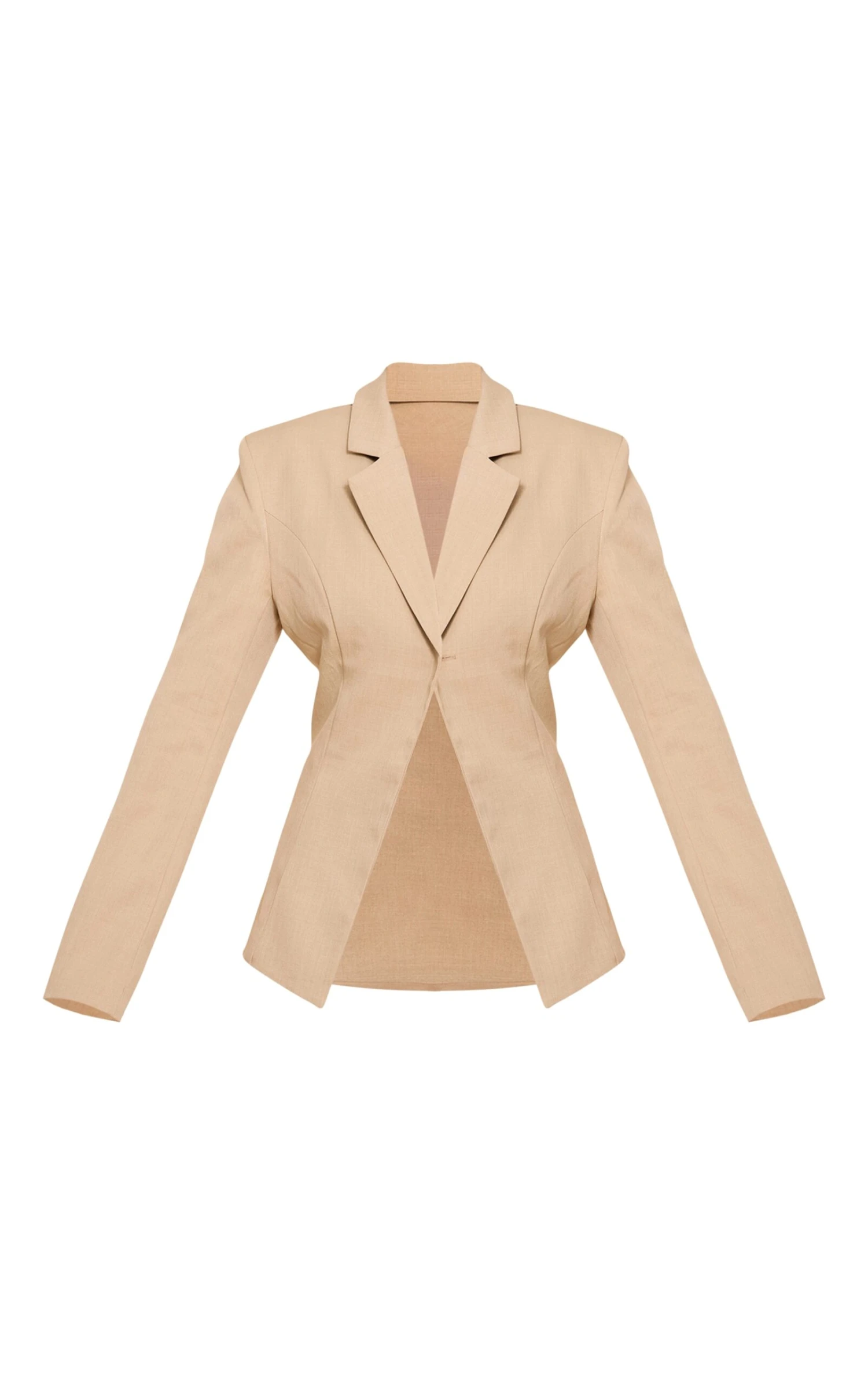 Redefine your tailoring game with the almond butter open cinched waist blazer, a modern statement piece designed for confident dressing. This artful blazer features sharp, notched lapels and structured shoulders, crafting a powerful silhouette. Its unique single value closure at the waist creates a flattering cinched effect, while the open front design adds an effortless, contemporary edge. Team this sophisticated outerwear with high-waisted tailored pants and pointed heels for a refined office look, or throw it over a simple cami and distressed jeans with chunky sneakers for an elevated off-duty vibe.