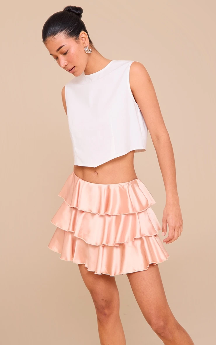 Tap into your feminine side with this almond satin tiered flippy mini skirt. Brought to you in an almond satin material with a tiered design and a flippy detailing. Pair this mini skirt with a basic top and your favorite heels to feel seen this season.
