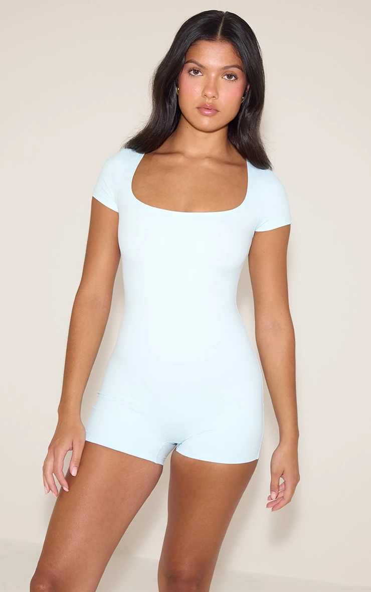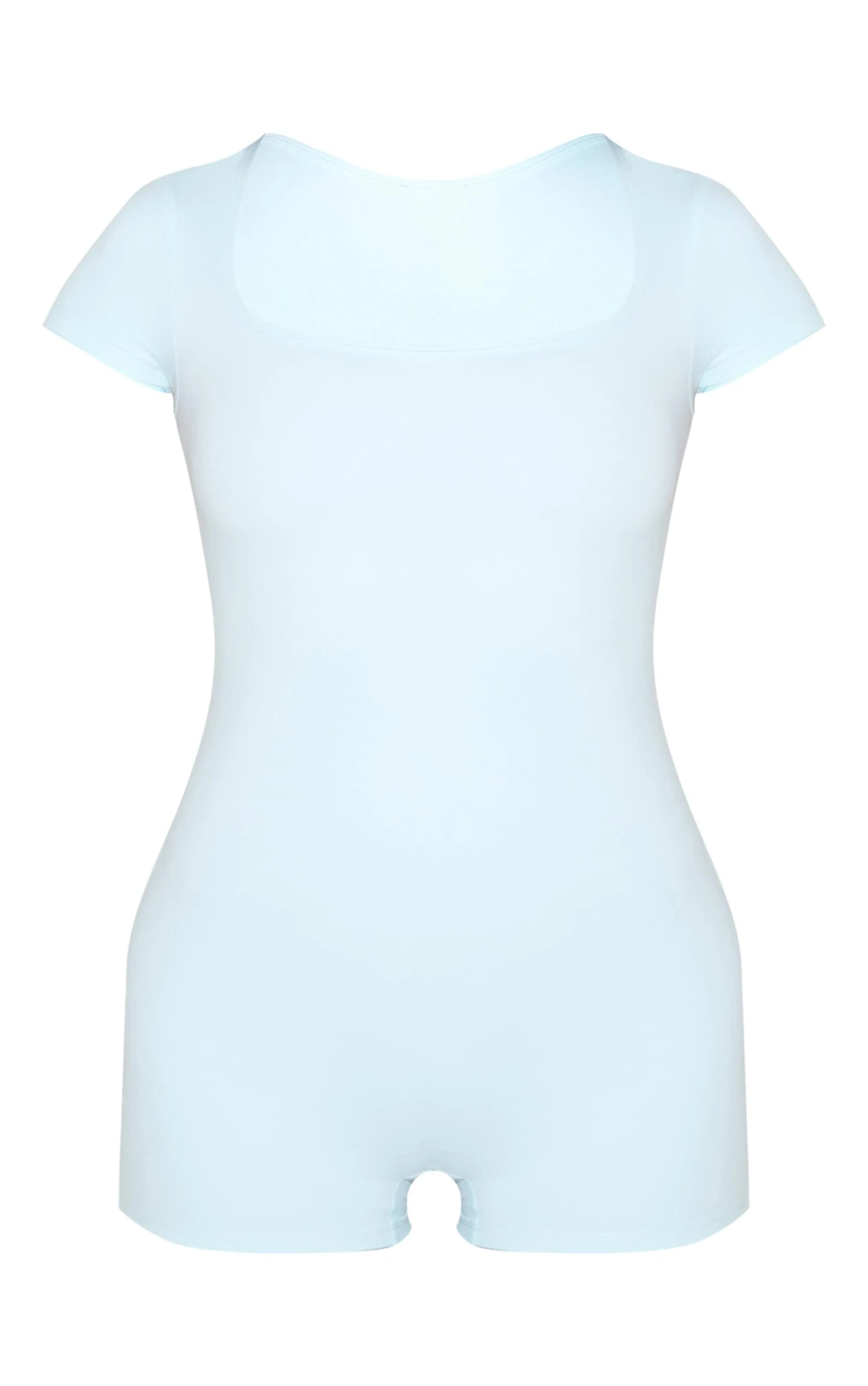 Streamline your look with the baby blue square neck snatched sculpt unitard. Made from a baby blue sculpting stretch material, this unitard features a square neckline and figure-hugging fit for a sleek silhouette. Finish the look with slip-on sneakers and your favorite accessories for effortless sporty-chic appeal.