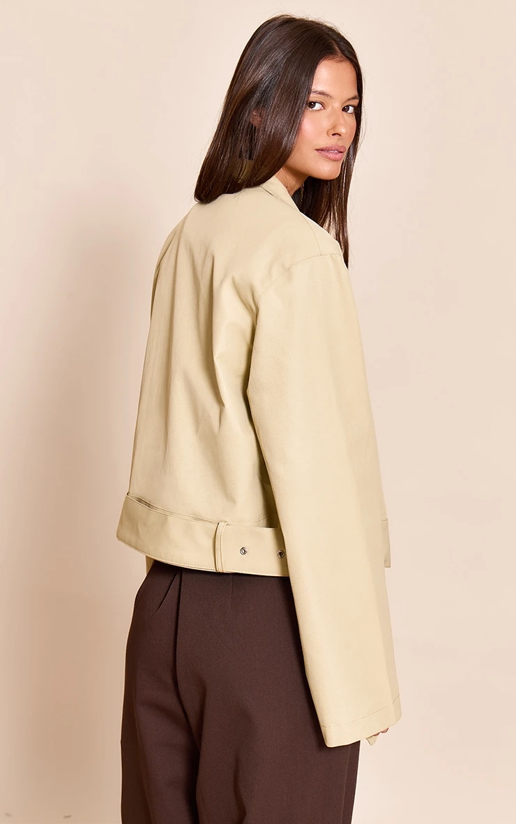 Introduce an assured edge to your outerwear rotation. The beige cropped belted Biker jacket redefines the classic with its sharp, contemporary cut and sophisticated beige hue, featuring a distinctive stand collar and a confident silver-tone buckle on its adjustable waist belt. Its modern cropped length and relaxed wide sleeves create a streamlined profile, effortlessly cinching at the waist with a secure zip fastening. For a refined day aesthetic, style this versatile piece with tailored wide-leg pants and sleek loafers, or opt for dark wash straight-leg jeans and crisp sneakers for an effortlessly confident, off-duty presence that truly owns the moment.