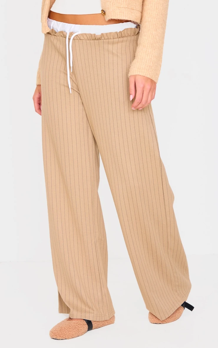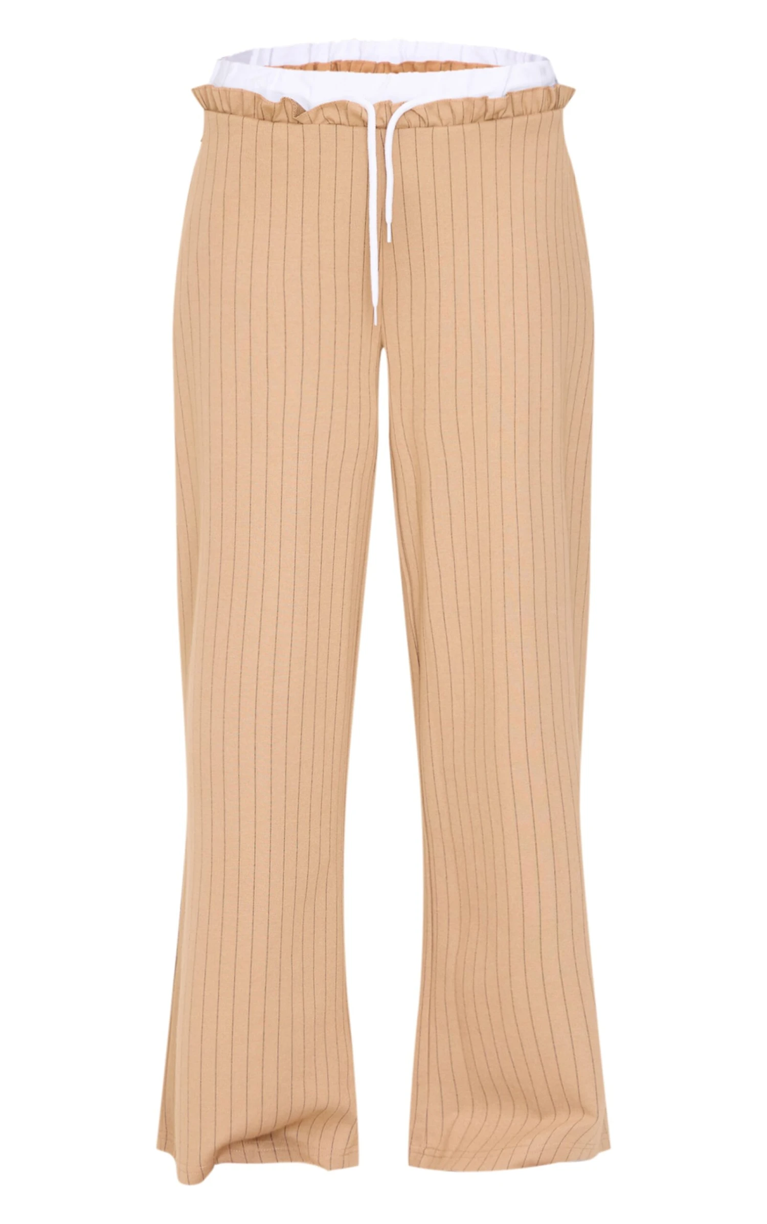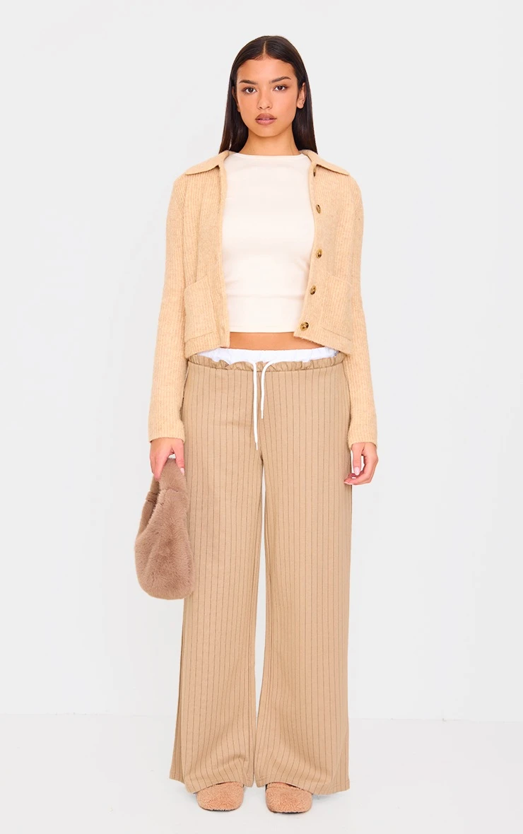 These beige pinstripe contrast waistband wide leg pants are sure to be a staple in your new season wardrobe. Brought to you in a beige hue pinstripe material with a contrasting waistband and a wide leg fit, how can you resist? Style these beige pants with a cardigan, sneakers and a neutral hue cap for a simple yet chic everyday look we’re loving.