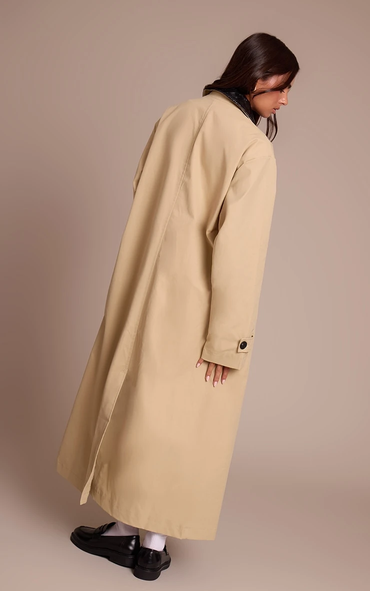 Wrap up in the beige quilted collar maxi coat. Made from a beige quilted material, it features a collared neckline, maxi length, and relaxed cut for cold-weather layering. Style with slip on mule heels and a shoulder bag for a look like no other.