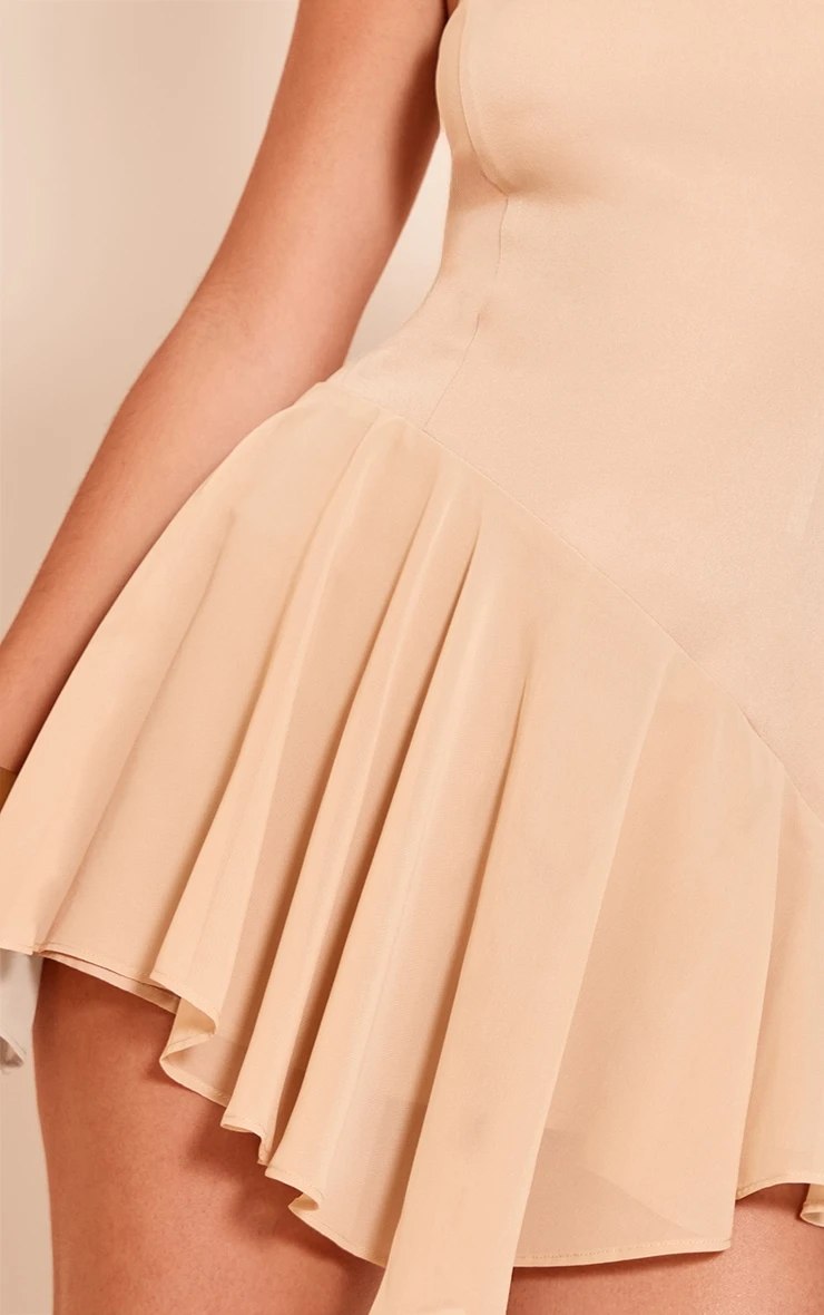 Brighten your wardrobe with the beige woven bandeau frill detail romper. Made from a beige woven material, this romper features a bandeau neckline and flirty frill accents. Pair with slip-on heels and gold jewelry for a playful summer-ready look.