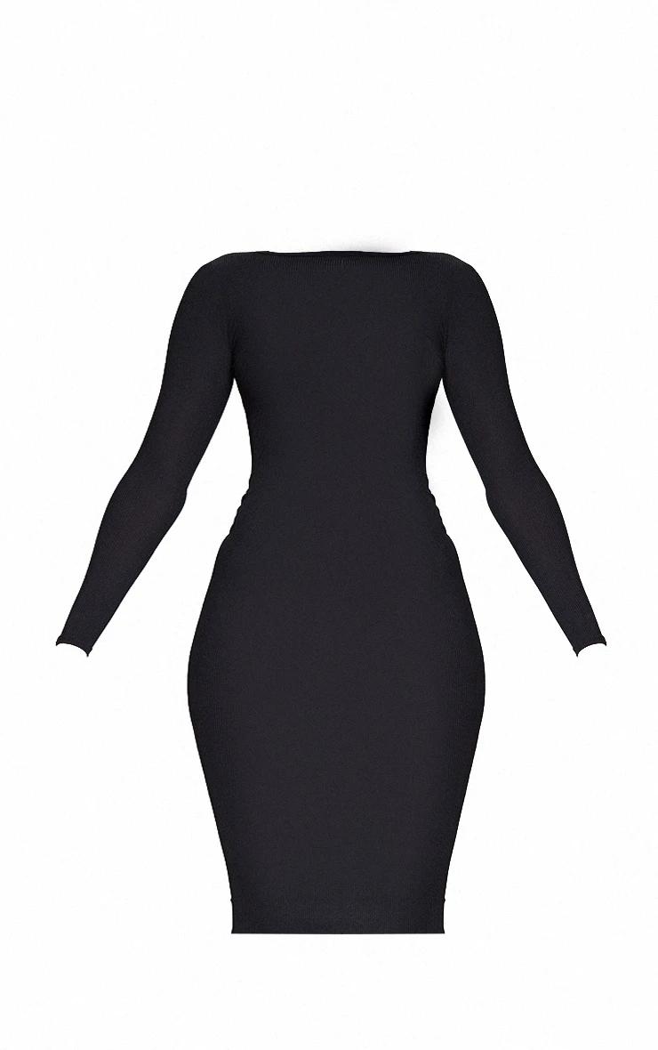 The long-sleeved ribbed dress, rendered in classic black, anchors any considered wardrobe. This piece balances understated sophistication with a contemporary edge, crafted from a tactile ribbed knit that offers both structure and comfort. The long sleeves lend themselves to trans-seasonal styling, making it a reliable building block for day or evening looks. Elevate the inherent versatility with a sculptural ring from our jewelry collection, a subtle statement that speaks volumes.