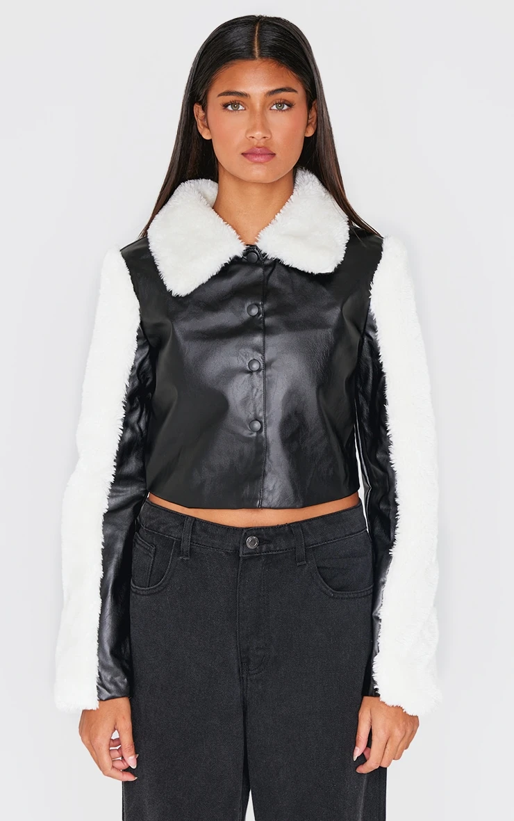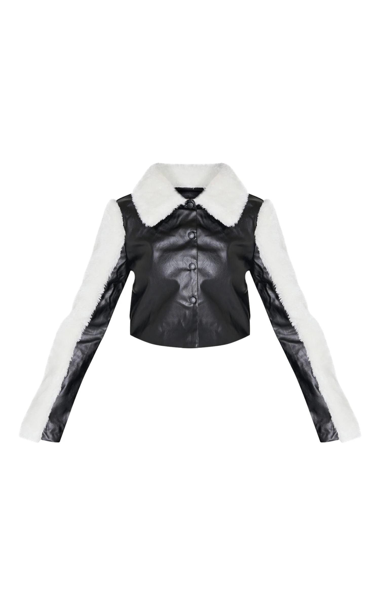 Invest in your outerwear edit with this faux leather jacket. The bonded sleeve design elevates the classic silhouette, offering a subtle textural contrast in sleek black. The clean lines and sharp tailoring lend themselves to a multitude of styling options. We see it layered over a fine-knit roll neck and paired with wide-leg tailored pants from our bottoms collection for an effortlessly cool take on contemporary dressing.