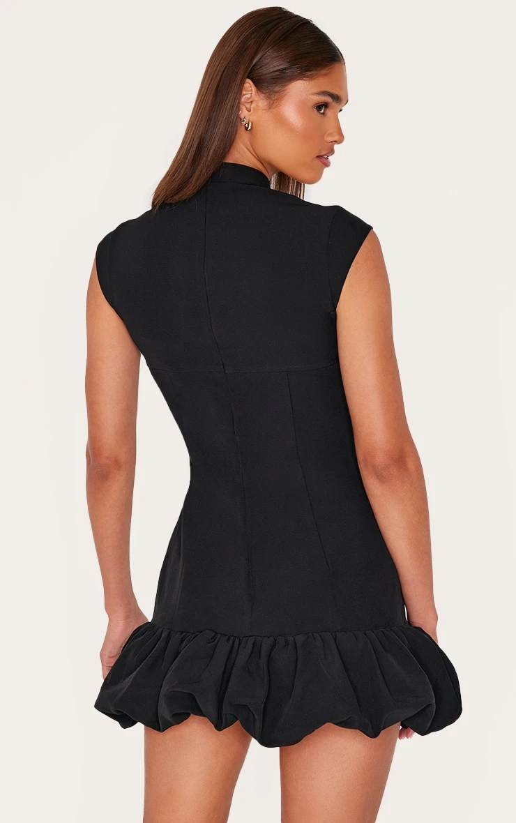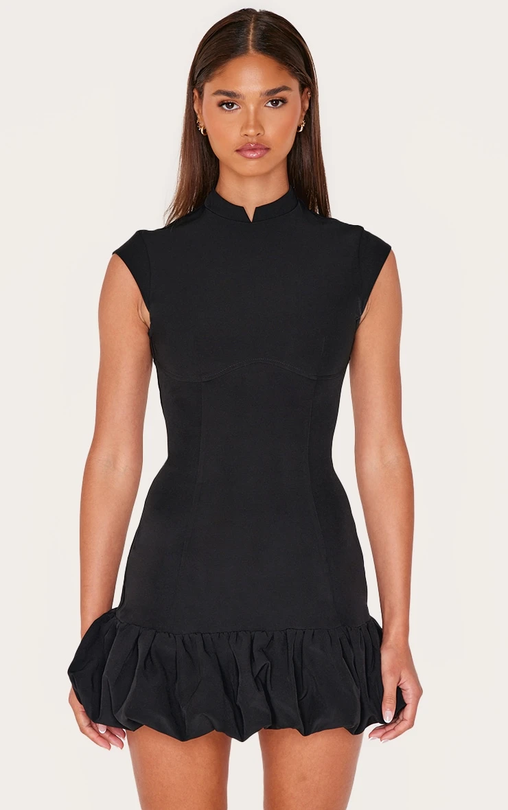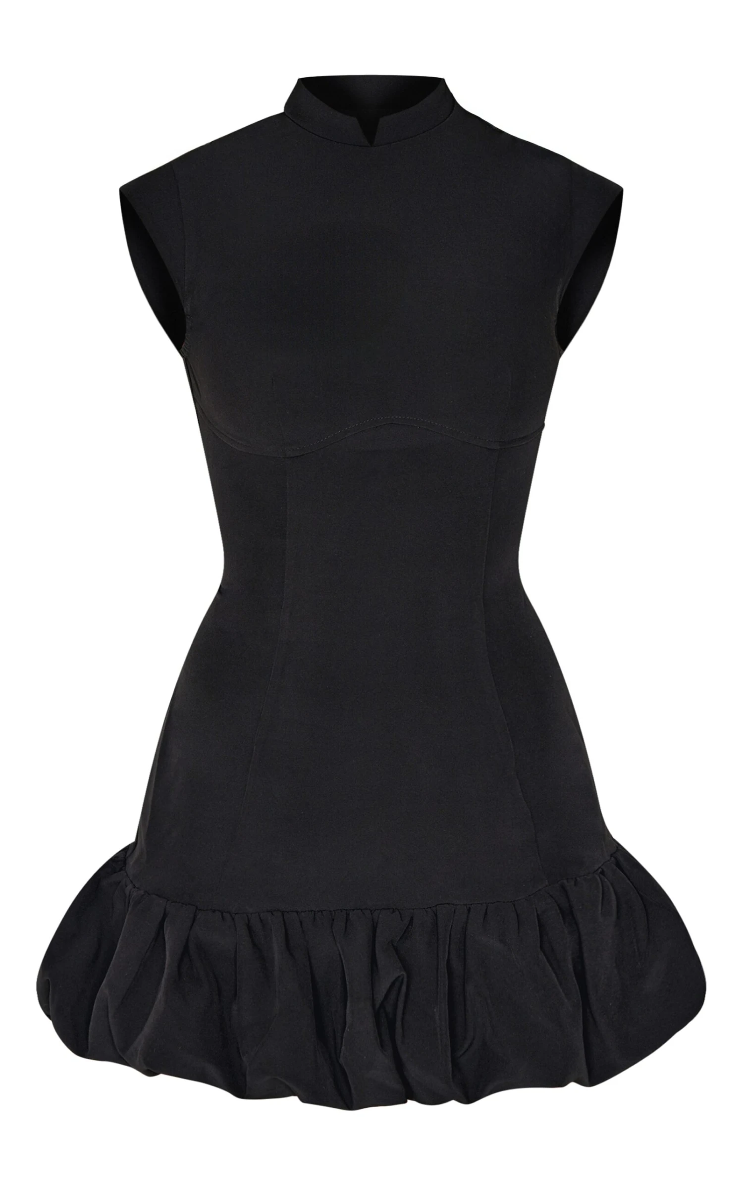 This black dress offers a masterclass in after-dark styling. Note the considered bust seam detailing that draws the eye, balanced by a contemporary puffball silhouette. Crafted in a versatile black, this piece lends itself to myriad interpretations. Consider offsetting the mini hemline with a pair of statement earrings from our jewelry collection for an elevated take on evening elegance.