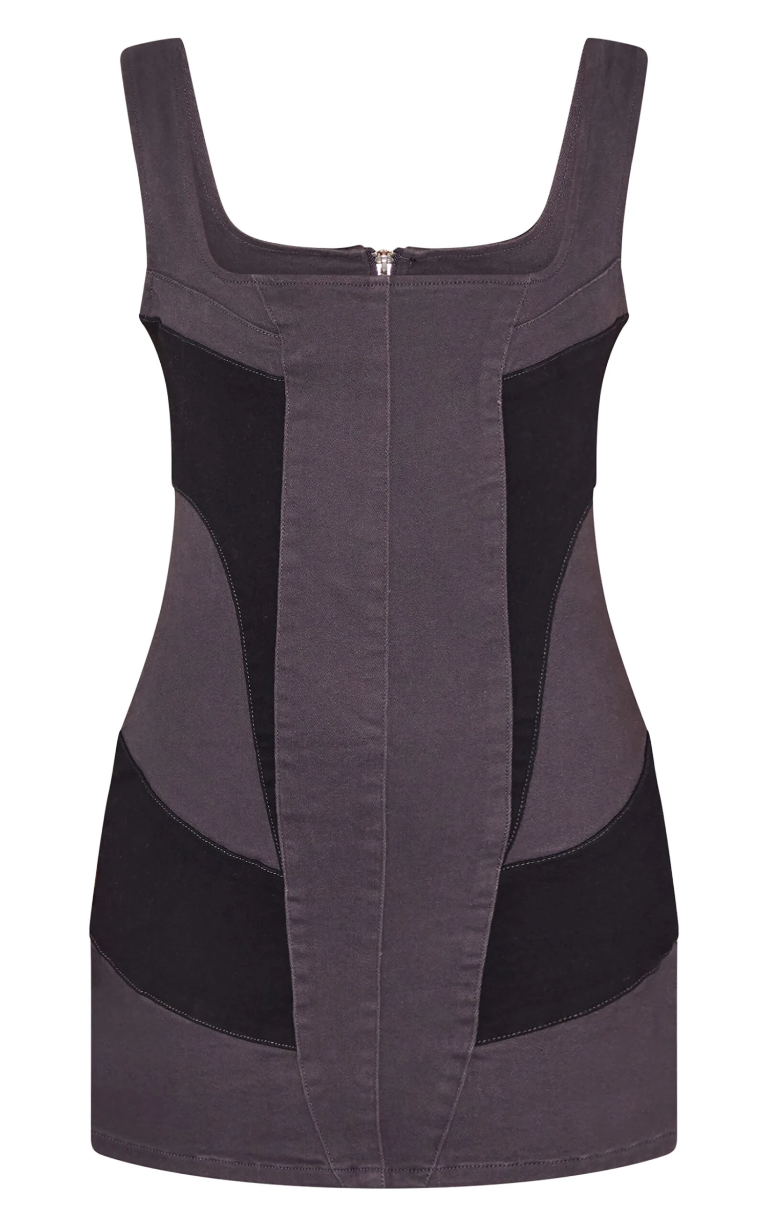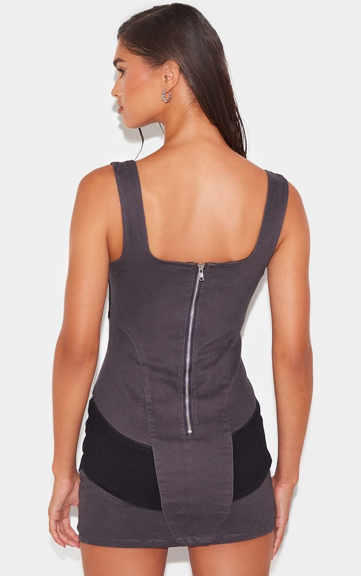 Deconstruct denim’s inherent utility with this directional mini dress. Crafted from a robust black denim, the carefully considered contrast panels sculpt a streamlined silhouette. Note the meticulous detailing that elevates this piece beyond the everyday. Style with a chain-detail shoulder bag from our accessories collection for an of-the-moment after-dark edge.