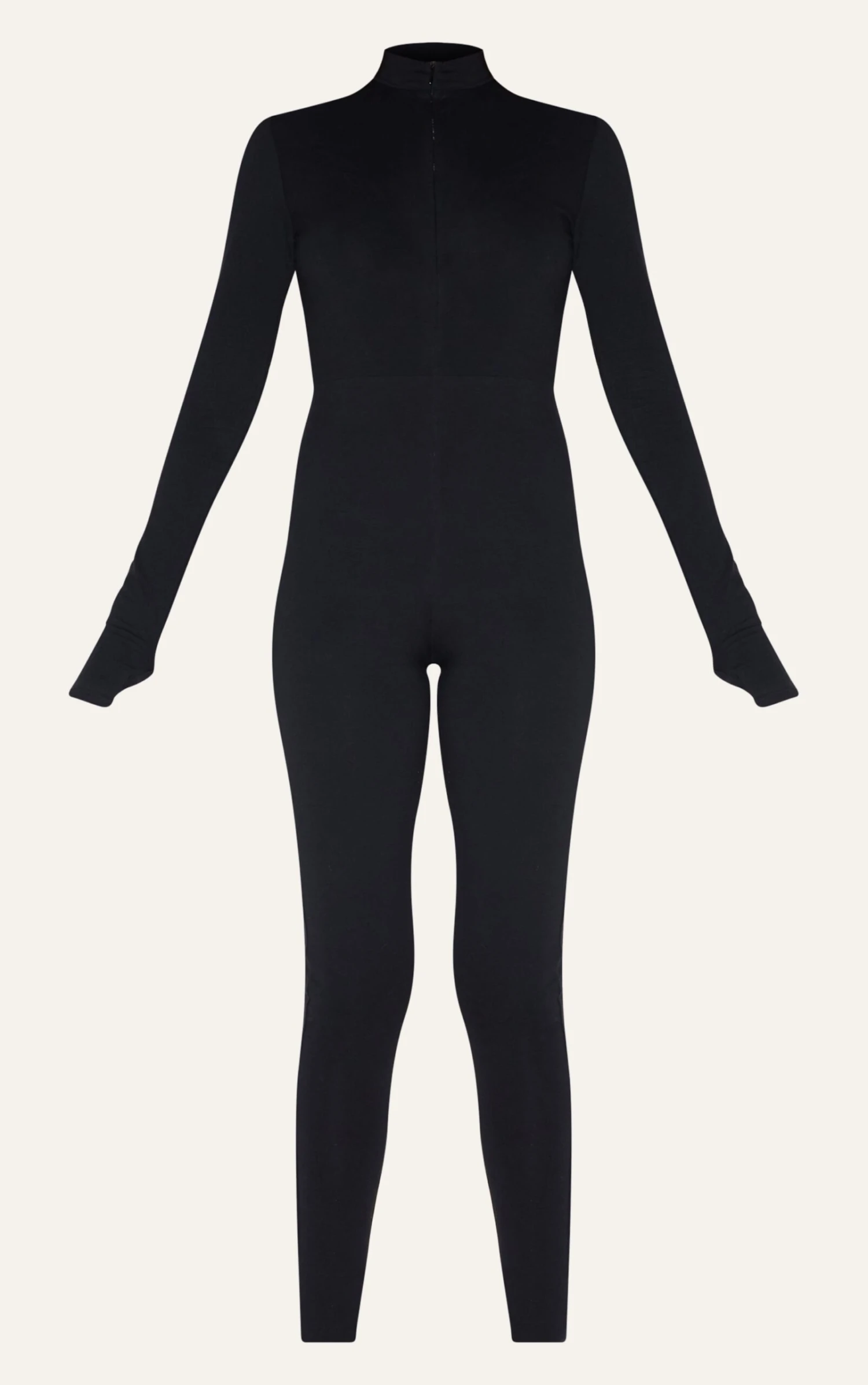 This catsuit reimagines the essential black foundation piece. Cut from comfortable cotton, the zip front allows for versatile styling, dictating the neckline to your preference. The long sleeves create a streamlined silhouette, perfect for layering or wearing solo. Consider this a modern alternative to your usual separates. Style it with a pair of statement earrings from our jewelry collection for an elevated after-dark ensemble.