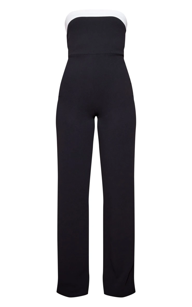 A masterclass in monochrome dressing, this black crepe jumpsuit offers a lesson in considered design. The wide leg silhouette elongates the frame, while the contrasting fold-over detail at the neckline introduces a subtle architectural element. Cut from a smooth crepe fabric, the jumpsuit provides a clean, refined aesthetic, ideal for occasions that demand a sartorial edge. Elevate the look further with a delicate chain necklace from our jewelry collection, allowing the jumpsuit’s inherent sophistication to take center stage.