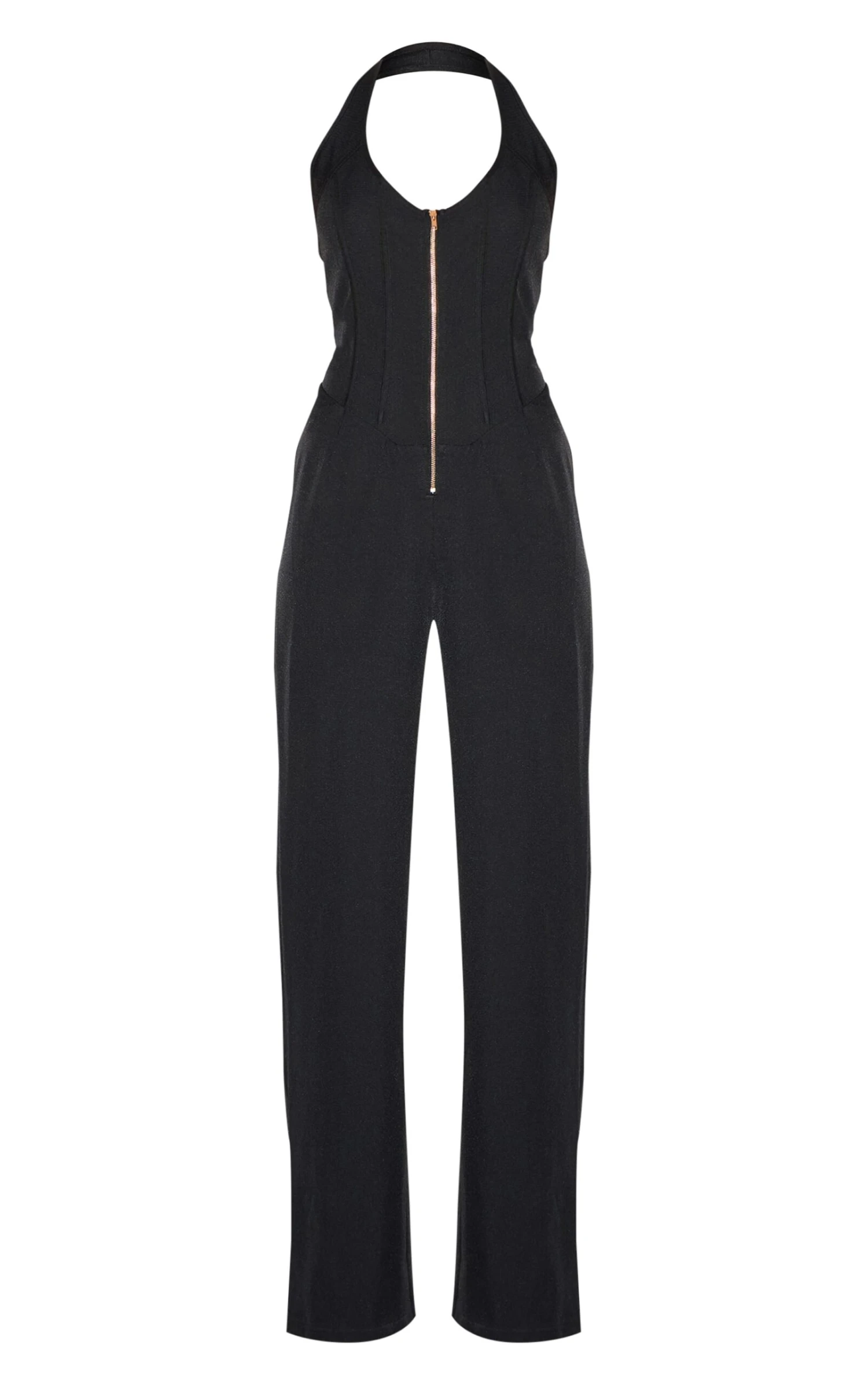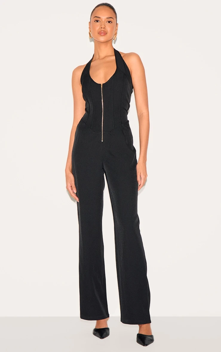 Make weekend styling look effortlessly chic in this black dipped corset zip front wide leg jumpsuit. Made from a black hue material with a dipped corset design, a zip fastening and a wide leg fit. Style this black jumpsuit with court heels and minimal accessories for a look like no other.